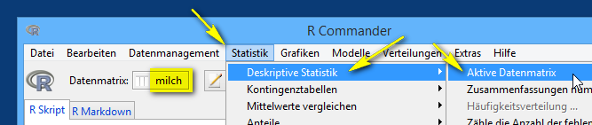 Wählen Sie 'Statistik' > 'Deskriptive Statistik' > 'Aktive Datenmatrix':