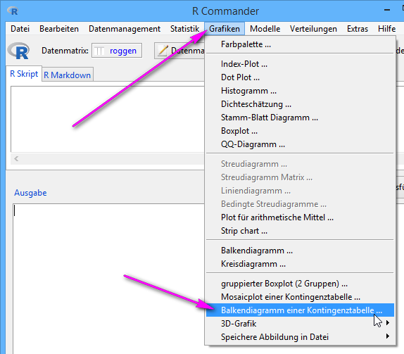 Wählen Sie bitte Menüpunkt 'Grafiken' > 'Balkendiagramm einer Kontingenztabelle …'
